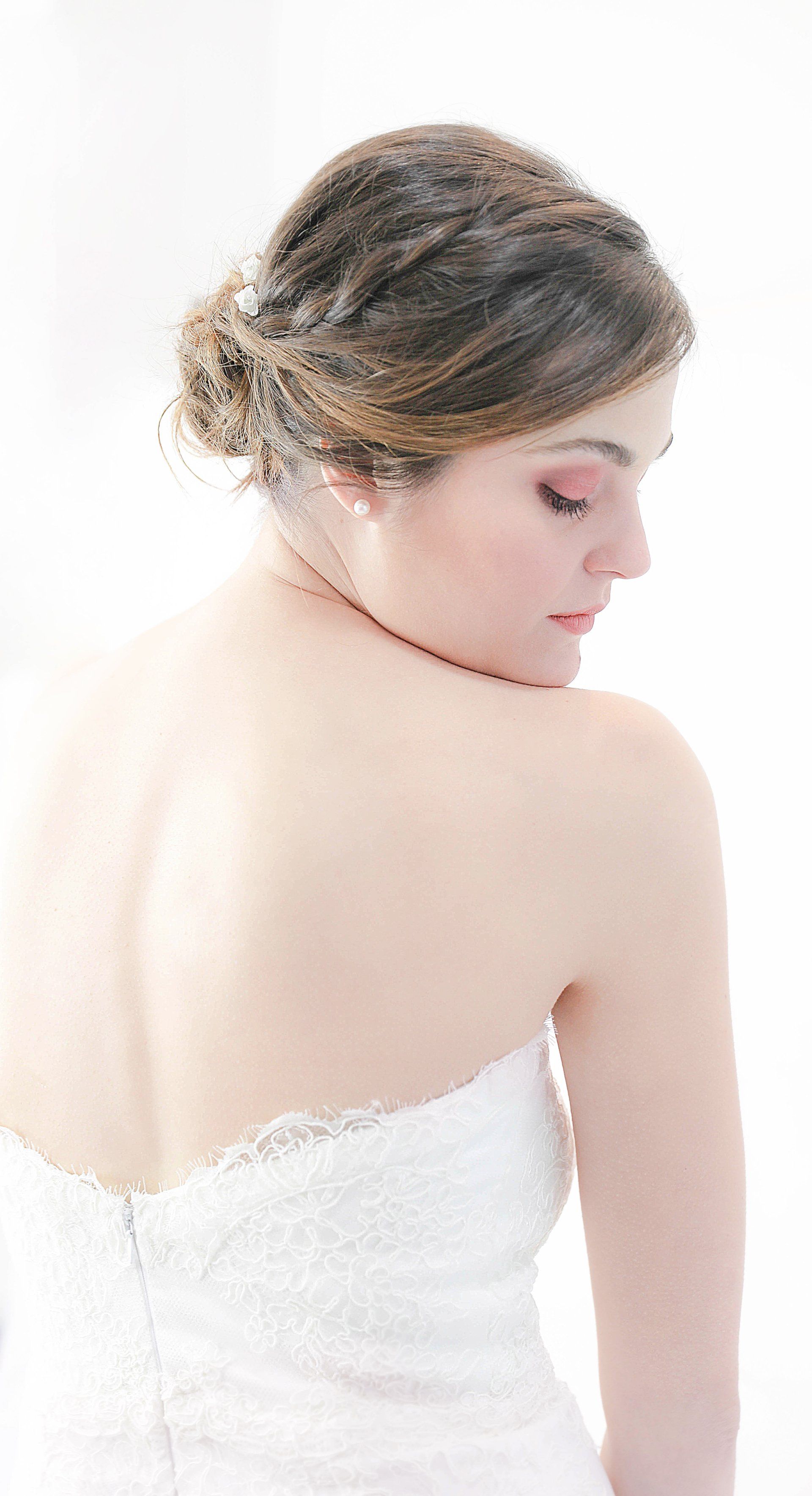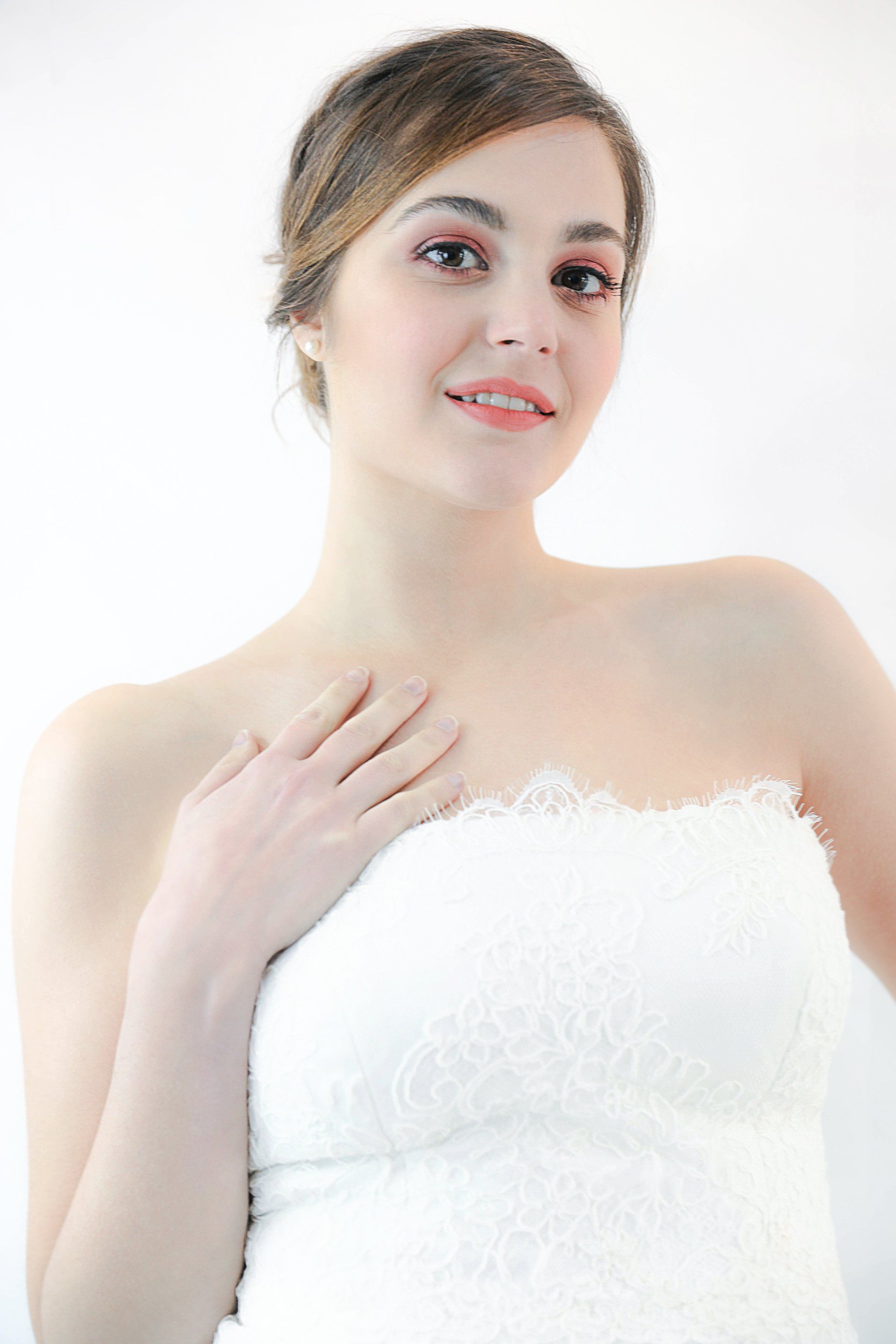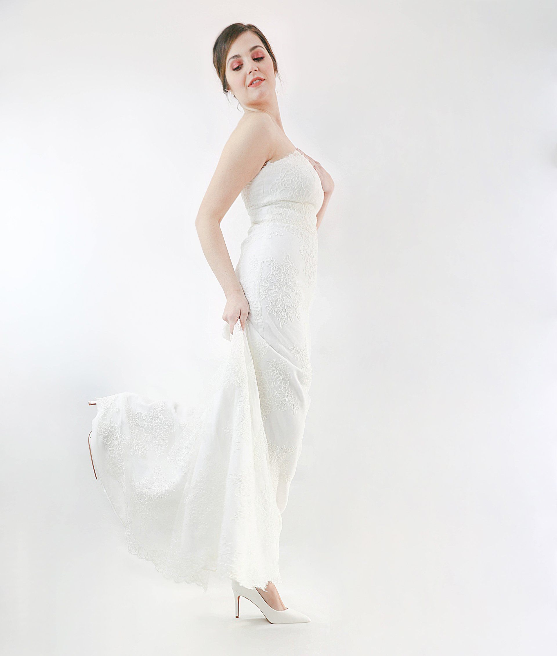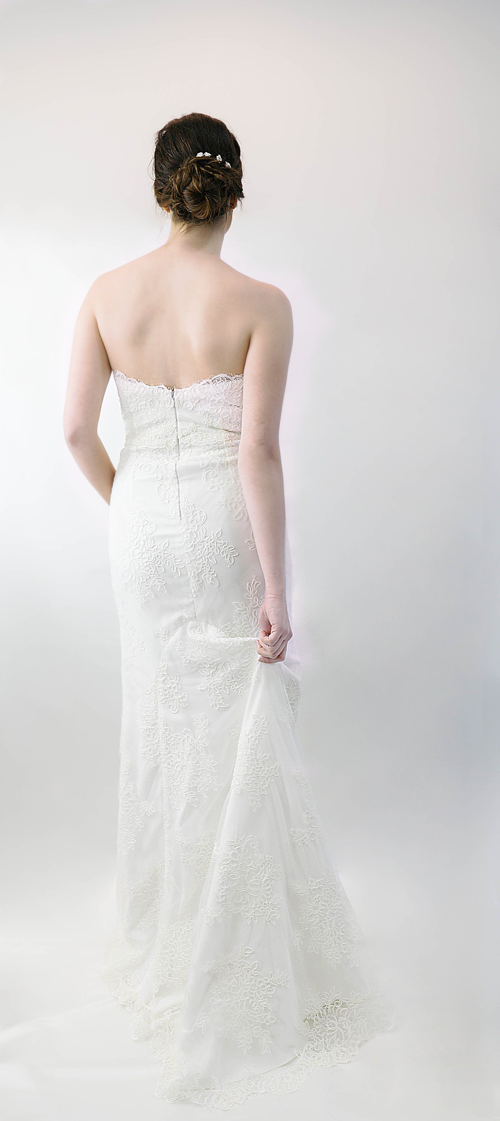 Vestido palabra de honor con corte sirena en tul bordado con rebrodé
